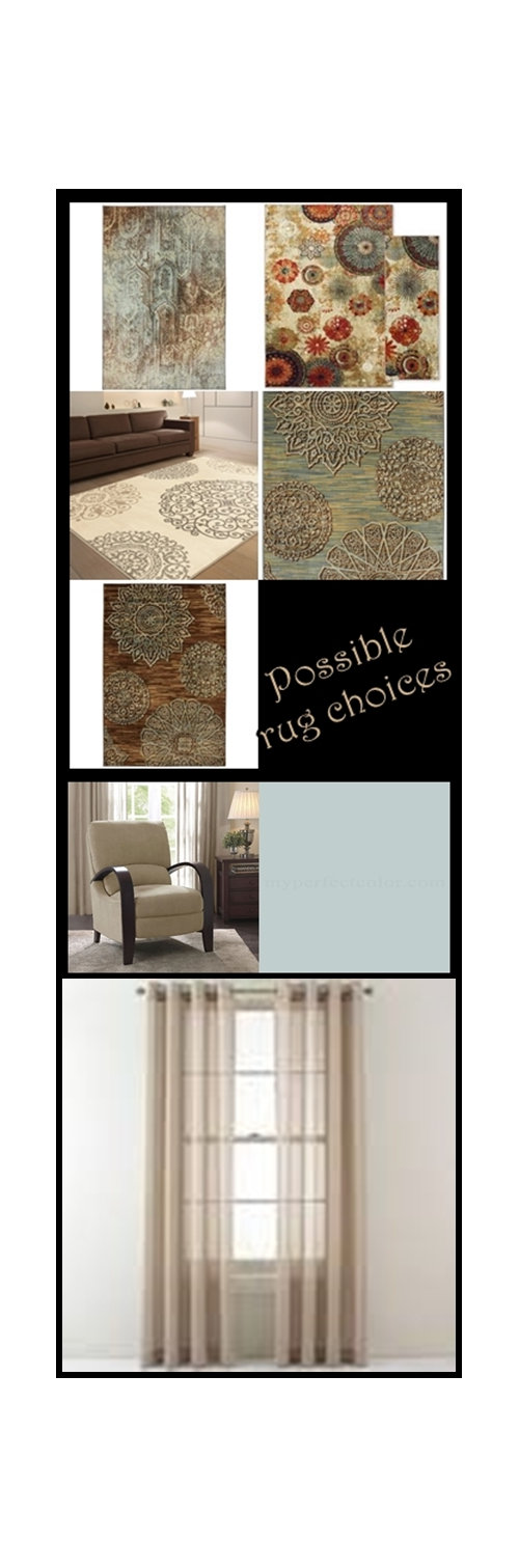 The color on the walls is Sherwin Williams Tradewind and it is more blue than I had anticipated so hope I can make it all work. My curtains are called khaki but after receiving them, they look to be more of a grey color. I am not sure all the colors go together or how to tie them together. I am also unsure about the area rug. Our old rug was a 8x10 size but now wonder if we should go with a smaller one and not put any furniture on it other than our coffee table. Also not sure what colors I should look for in the rug. If I should go with primarily blue or brown or try and tie in some grey and ivory since my curtains are reading that way. The rooms dimensions are 12'11 wide and 19'6" long with an additional 18" beyond the fireplace hearth on either side of the fireplace.