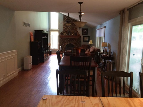 We have discussed getting rid of the TV cabinet since it seems too large for the room and instead, putting the TV in the right corner on a perhaps a small corner unit. I am challenged by the narrowness of the room, the fireplace AND the TV and the large picture window. This room is also part of a bigger room, with our new kitchen (in process) and eat in area.